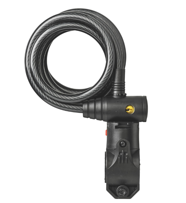 Comes with an integrated mount/bracket that allows storage of cable on bike when not in use.